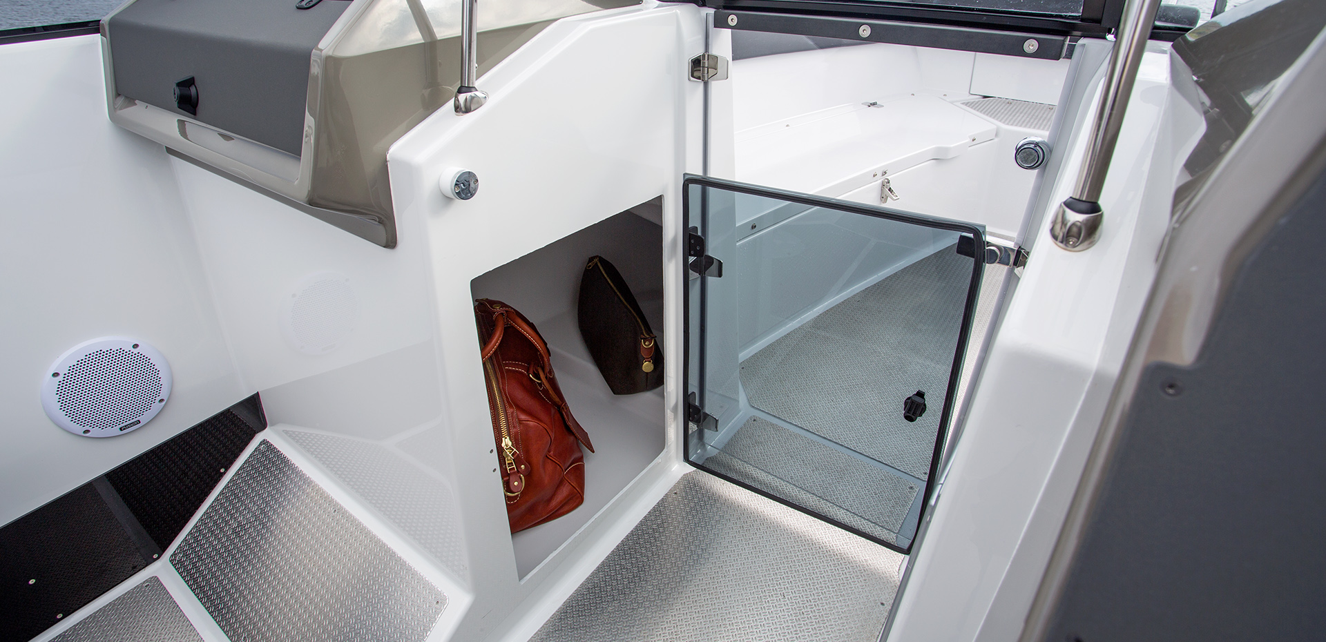 Husky R8 on laadukas alumiinivene, joka on sekä reippaan urheilullinen että myös mukava. Huolellisesti muotoillun alumiinirunkonsa ansiosta. Husky R8 kulkee sujuvasti ja sitä on helppo ohjata kovemmassakin merenkäynnissä. Tässä alumiiniveneessä on säädettävät offshore-istuimet, joissa ohjaaja ja matkustajat istuvat ergonomisesti ja mukavasti säällä kuin säällä. Keulassa on kunnollisen kokoinen ja mukava L:n muotoinen sohva matkustajille. Korkea tuulilasi suojaa tuulelta ja roiskeilta, ja suurella U:n muotoisella sohvalla voi ihailla maisemia turvallisesti. Ja jos sää on oikein suotuisa, tilan voi kätevästi muuntaa isoksi aurinkotasoksi. Husky R8 -alumiinivene on täydellinen valinta kun arvostat huippulaatua, tilaa ja smart design –ratkaisujamme.