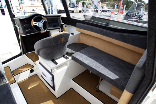 Matkustajalle on istuin kuljettajan vasemmalla puolella ja näiden takana penkki kahdelle. Kuljettajan takana hytin takaseinällä on penkki kahdelle ja sitä vastapäätä lisäksi kuljettajan vieressä yhdelle. Takapenkin voi halutessa siirtää sivupenkiksi. Näin hytin keskilattialle jää enemmän tilaa liikkumiseen esimerkiksi yhteysvenekäytössä. Pöydän avulla syntyy pieni sohvaryhmä oleskeluun.