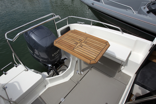 Keulan ankannokka helpottaa kulkua maihin, helppo askellus kannen tasolle korkeiden kaiteiden välissä tekee veneeseen nousun ja poistumisen keulasta vaivatonta. Leveä ovi hytin etuseinän paapuurin (vasemmalla) puolella antaa etukannelle enemmän hyötytilaa kuin keskelle sijoitettu kulkuovi.